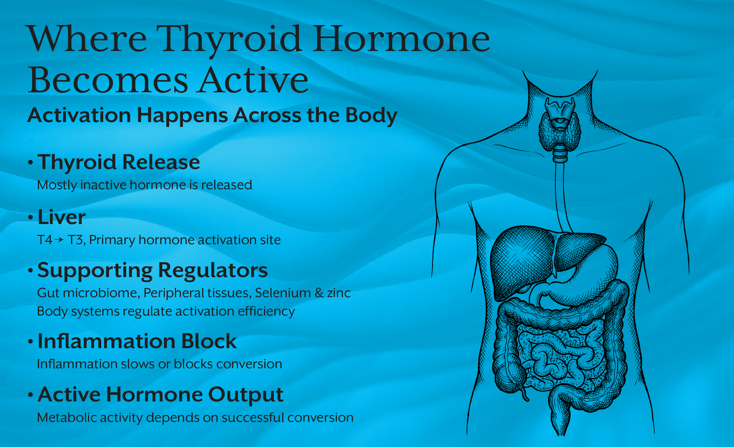 When conversion is impaired, patients develop subclinical hypothyroidism symptoms despite adequate production. This is not gland failure. It is systemic metabolic dysregulation.