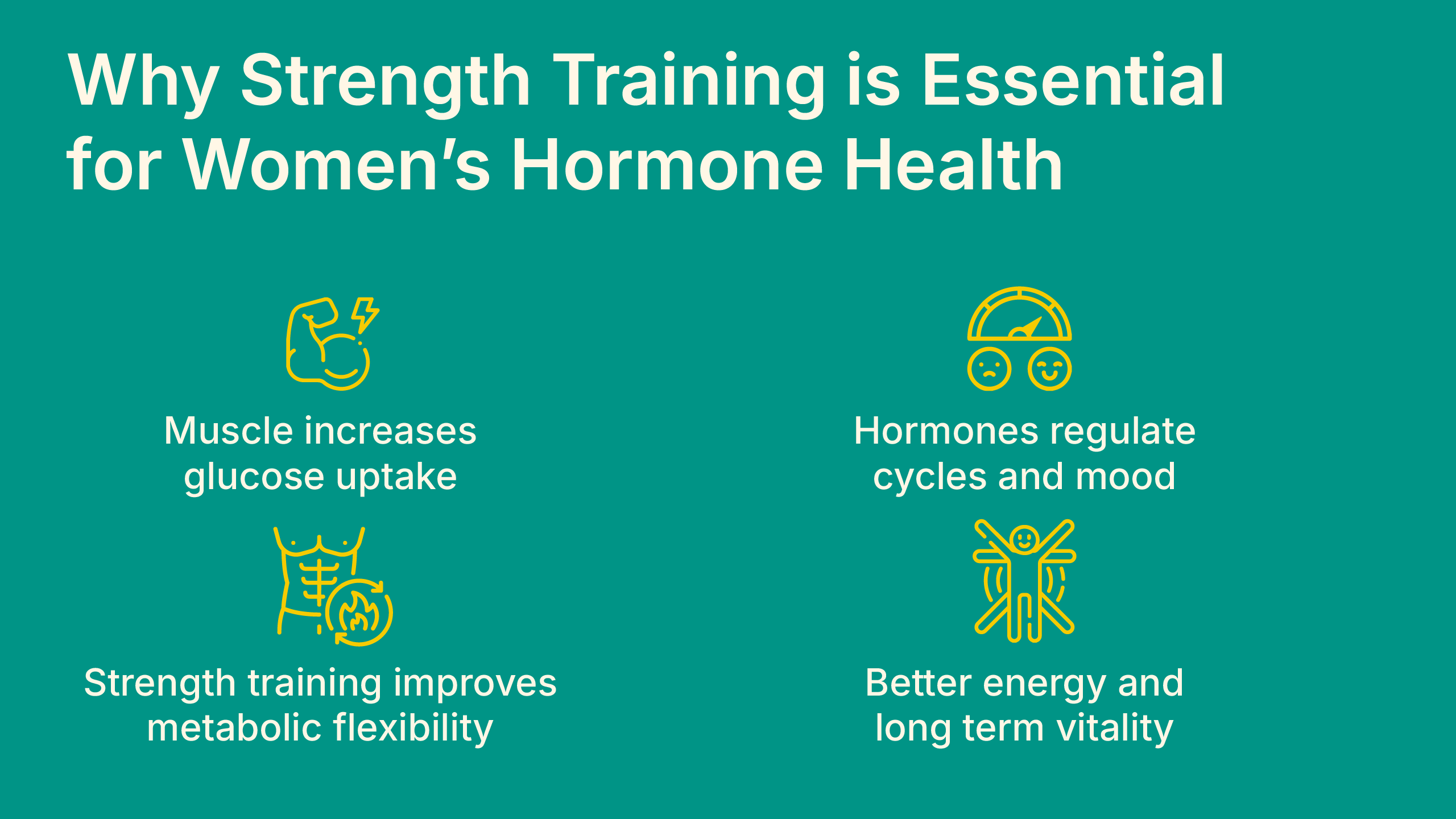Strength training is not just about lifting weights. It is about improving the body’s most important regulatory systems. It restores metabolic flexibility, supports emotional resilience, and strengthens the endocrine pathways that influence everything from energy to mood to menstrual regularity.