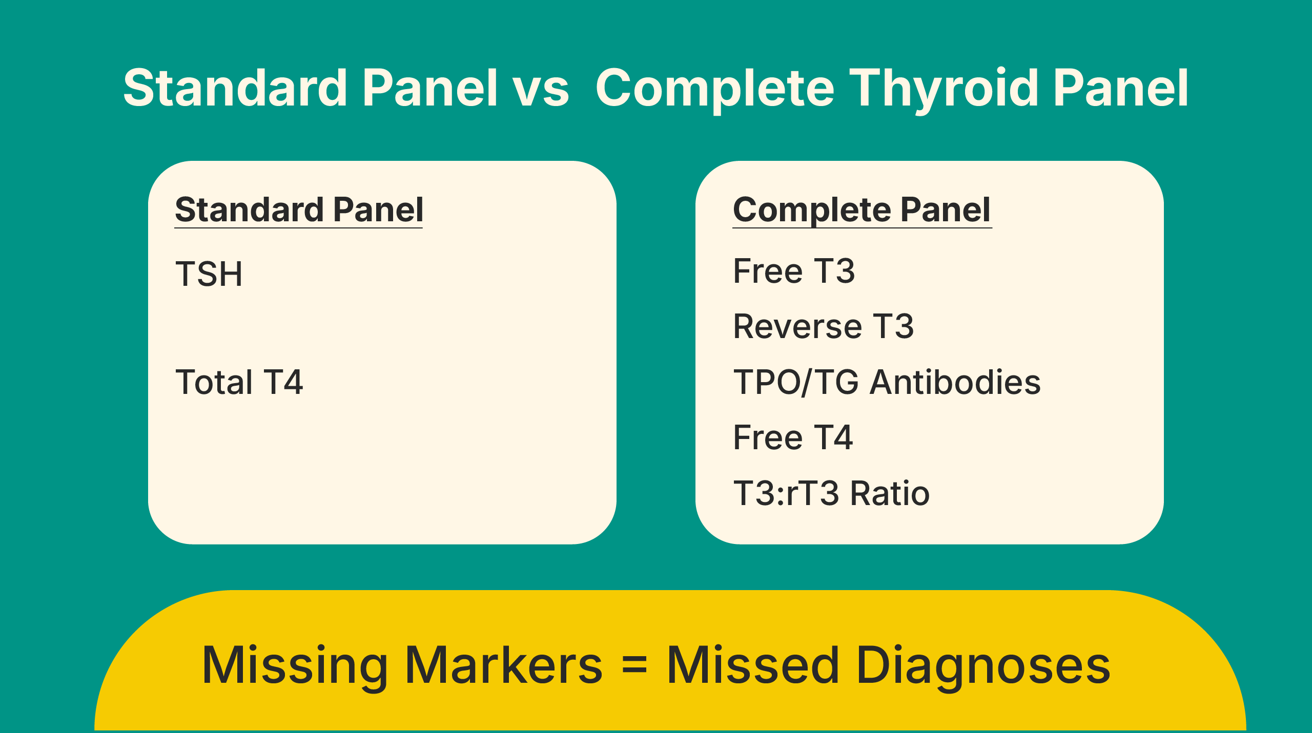 Conventional medicine typically checks only a couple of markers: TSH and T4.