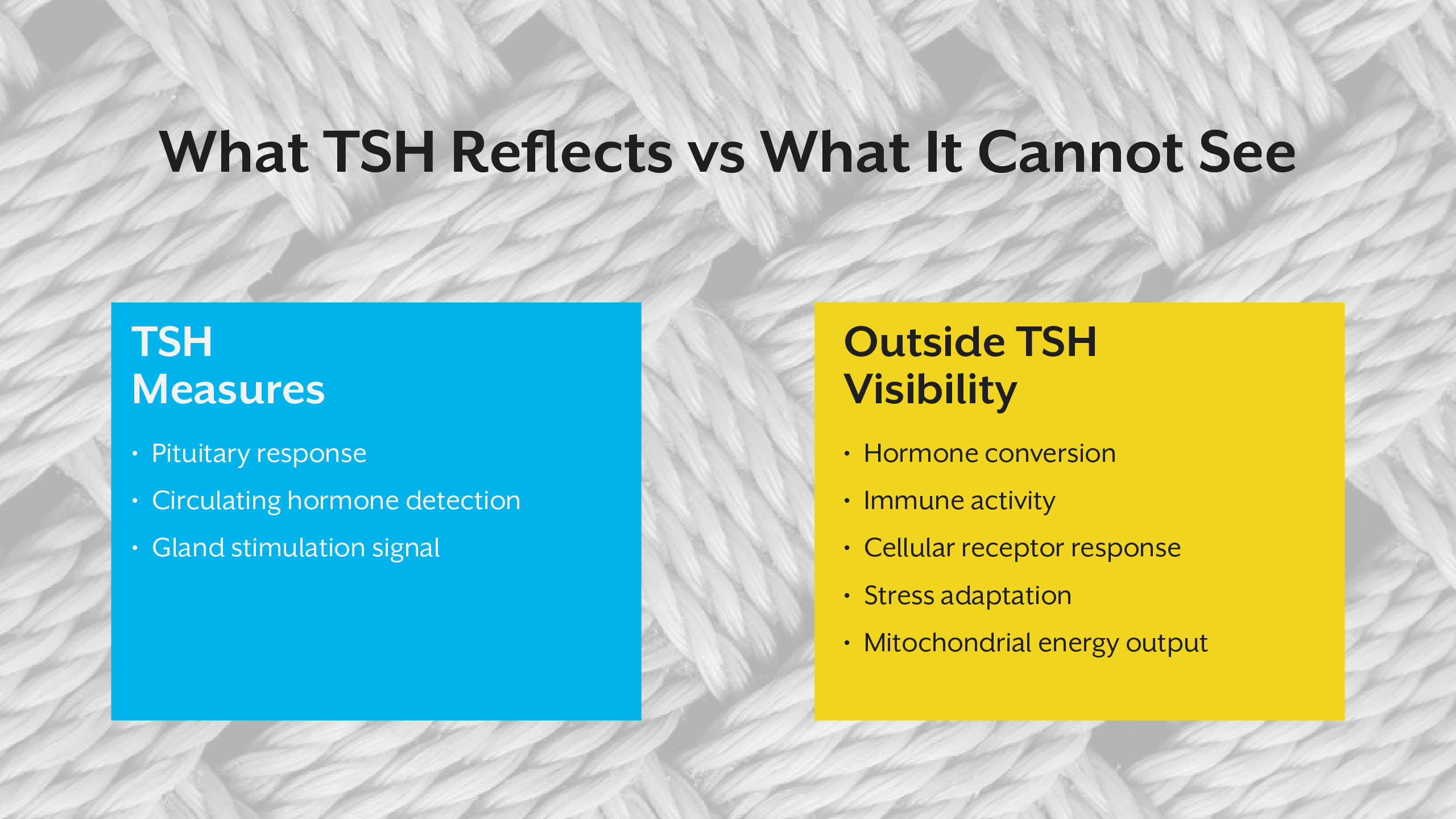 Interpreting TSH as a comprehensive indicator of thyroid health therefore oversimplifies endocrine physiology. It is a useful marker, but it is not a complete one. Treating it as definitive creates blind spots in clinical reasoning.