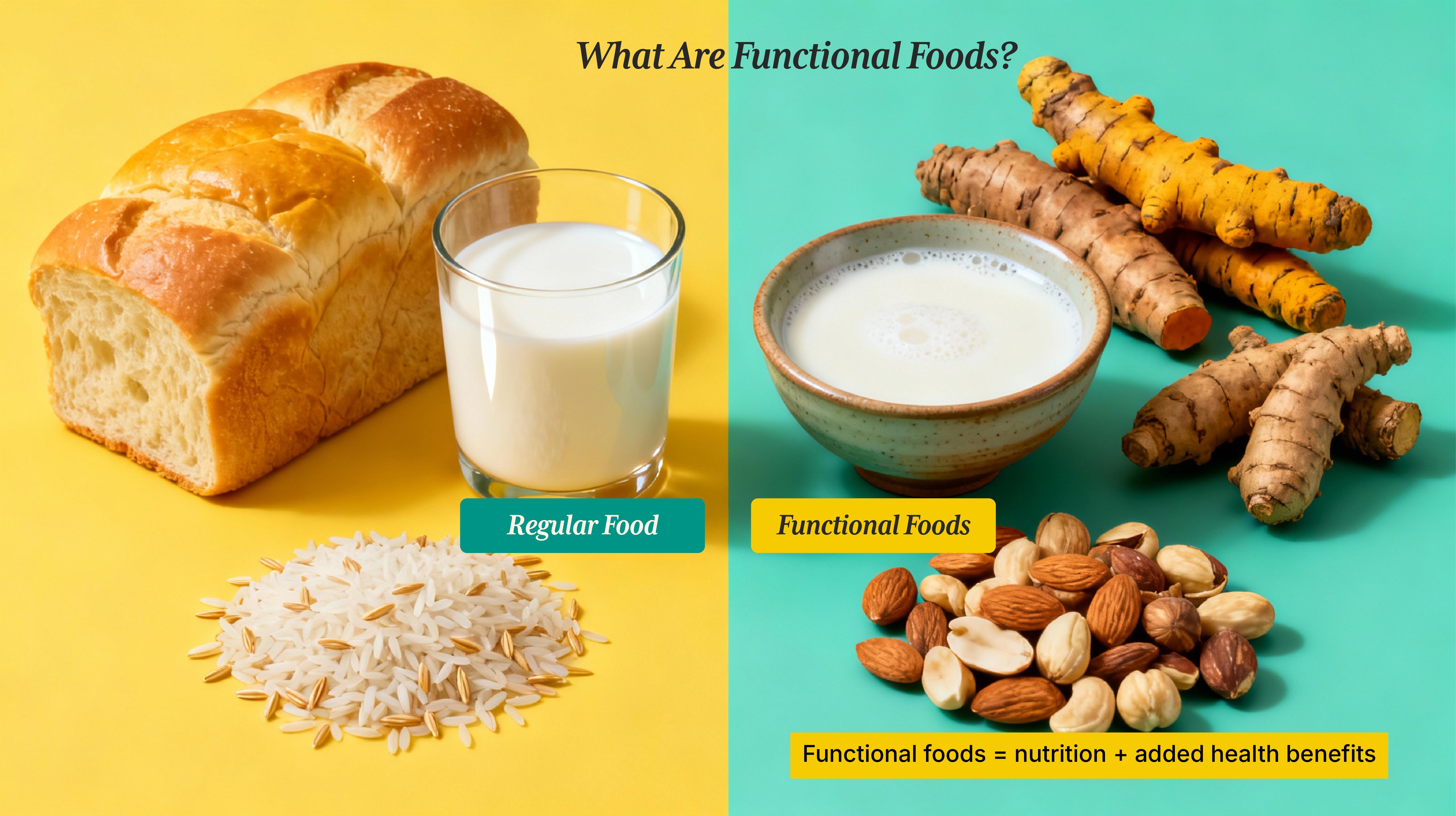 Before diving into the boom, let’s get clear on what functional foods actually are. In simple words, functional foods are not just about filling your stomach, they go a step further. They are naturally functional - offering health benefits that support the body beyond basic nutrition.”